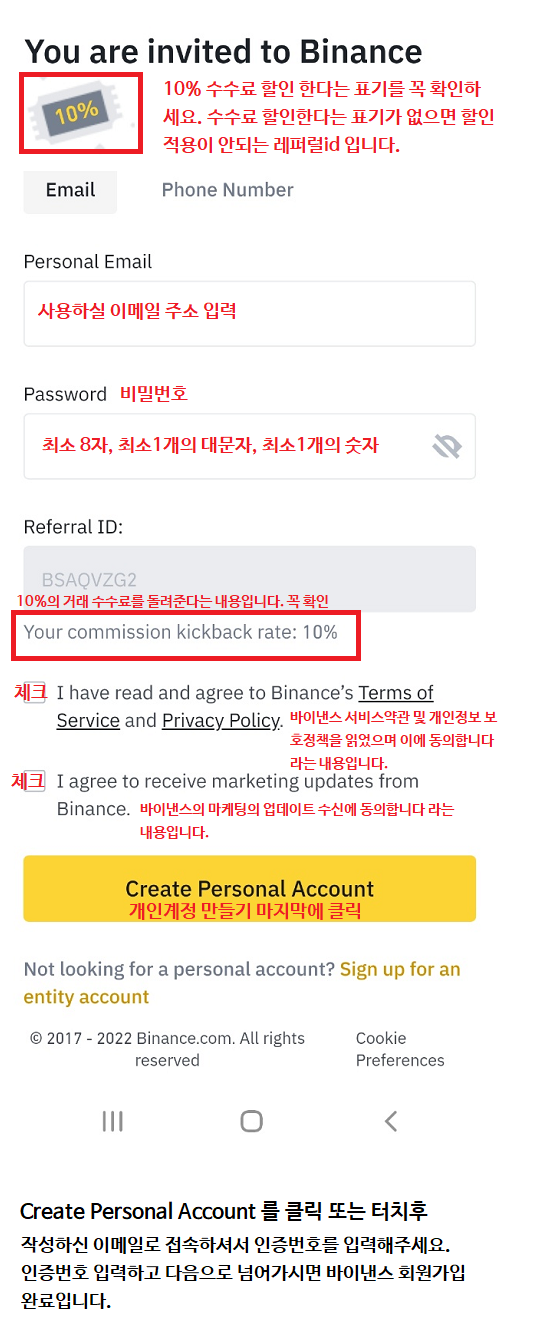 위 링크를 클릭 또는 터치 하시면 아래의 바이낸스 수수료할인 가입창이 보입니다.